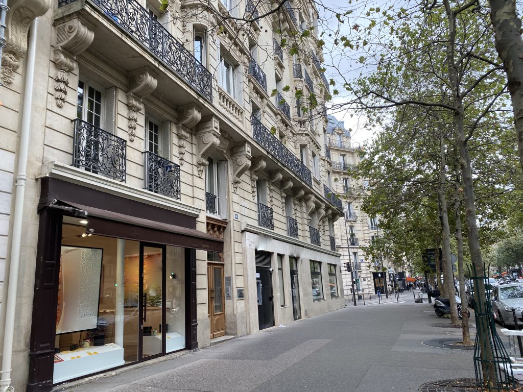 場所は、パリを象徴する「凱旋門」近くの真北に位置し、閑静な高級住宅街でありながら、感度の高いパリジャンが暮らすエリアとして知られています。観光地ではないぶん、アートに対する真剣な関心を持つ層が集まりやすい場所でもあります。周囲にはオシャレなカフェ、花屋、チーズ専門店、リネンショップなどが点在し、まさにパリの“地元の日常美学”が息づく街角。ギャラリーやデザインスタジオも点在しており、生活とアートが自然に溶け込む雰囲気があります。大通りに面した一等地でありながら、周囲は喧騒がなく静か。ギャラリー訪問に来る人たちは「冷やかし」よりも、「本気でアートを観に来ている」層が多いのが特徴。